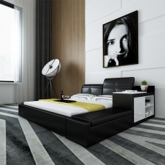創意真皮床雙人床現代婚床1.8米1.5榻榻米床儲物床皮藝床軟床大床 床側儲物 升降靠背 雙ll價格 更低