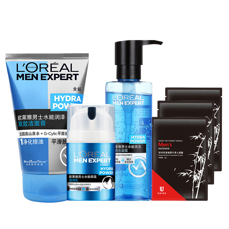 歐萊雅男士水能保濕化妝護膚品套裝深層補水滋潤洗面奶爽膚水乳液