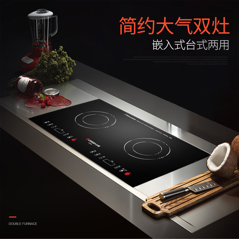 商品名稱:志高嵌入式電陶爐家用雙頭雙灶鑲嵌式電磁爐雙眼光波爐特價正品 不挑鍋可燒烤 三環猛火 嵌入式雙灶