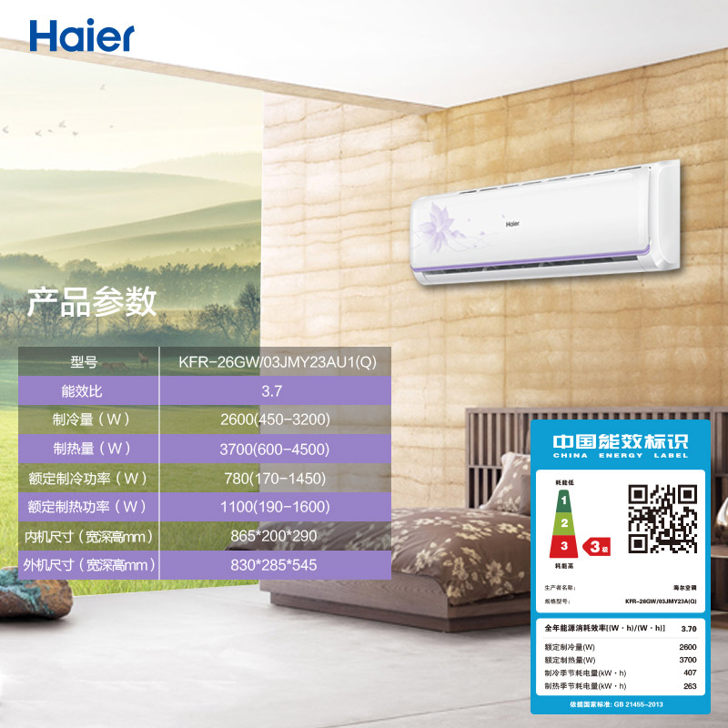 商品名稱:Haier/海爾 KFR-33GW/10EBBAL13U1 1.5匹智能壁掛式家用空調掛機 智能操控 快速冷暖 送裝一體