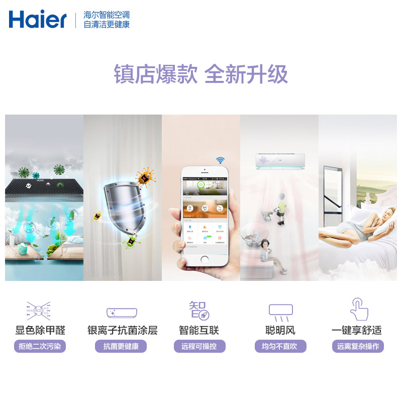 Haier/海爾 KFR-33GW/10EBBAL13U1 1.5匹智能壁掛式家用空調掛機 智能操控 快速冷暖 送裝一體