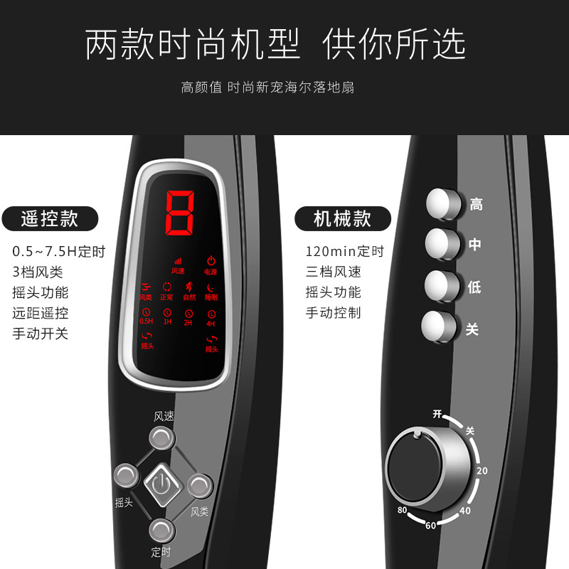 商品名稱:海爾落地扇家用電風扇遙控靜音 辦公室風扇 學生宿舍立式搖頭風扇 五葉颶風 全國聯保 大風力 超靜音