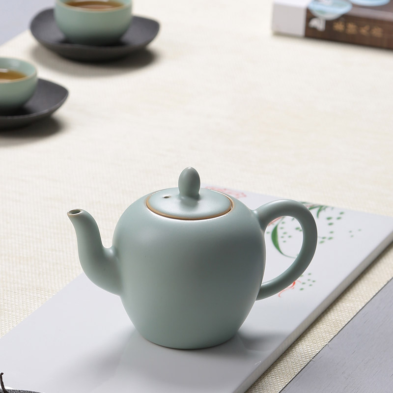汝窯茶壺開片汝瓷小西施單壺陶瓷功夫茶具家用泡茶壺大號龍泉青瓷 冰裂釉全手工 宜興 辦公室景德鎮 創意