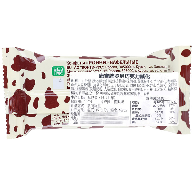 商品名稱:俄羅斯進口零食品 POHHN小牛大奶牛巧克力威化夾心餅乾15包約500g 500g/袋 約15包