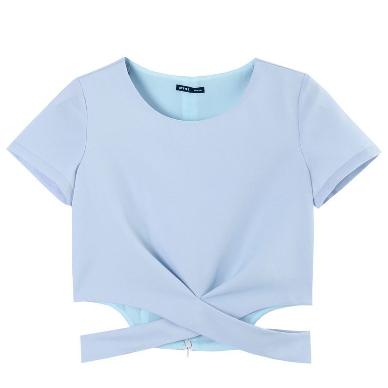 韓都衣捨2017韓版女裝夏裝新款純色鏤空露腰短袖T恤OU7163堯 韓版版型 時尚鏤空 舒適面料 個性穿搭