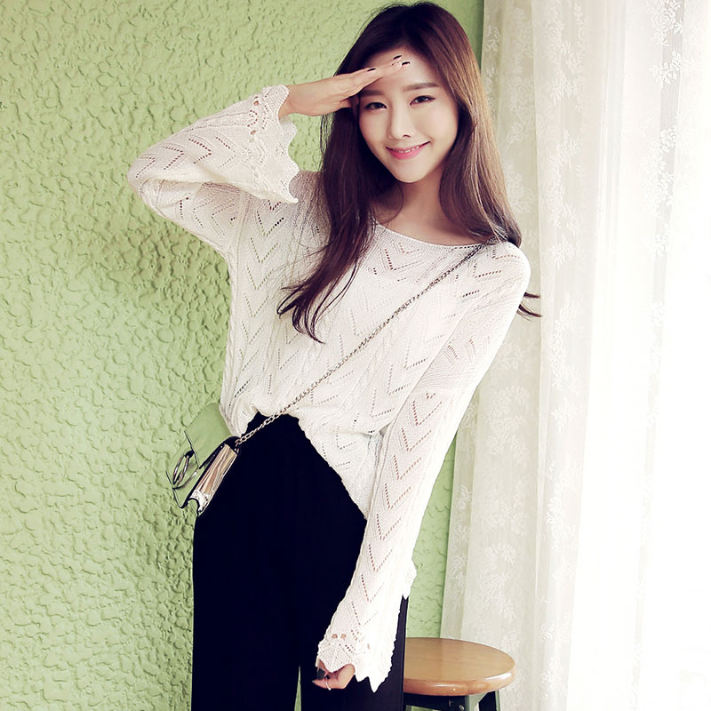 商品名稱:韓都衣捨秋冬喇叭長袖針織衫毛衣女套頭寬鬆純色百搭學生韓版打底 領券下單立減/單件包郵/先拍先發貨!