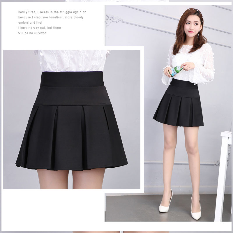 17年春夏新款百搭半身裙蛋糕裙 a字裙 褲裙傘裙大碼裙子超短裙女 鬆緊腰圍 帶褲邊打底襯 滌針織面料